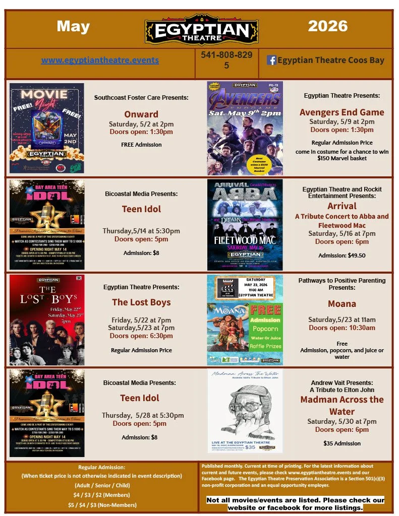 Sponsored by the ETPA. Tickets: Adults $5, Seniors $4, Kids $3.